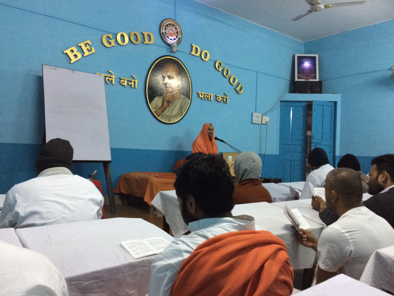 It appears as if Swami Atmaswarupanandaji goes into a deep mystical state when he speaks. He has written a small booklet entitled “Studies in Religious Consciousness”. It is a wonderful book and it also serves as his subject for the course. His class primarily deals with the necessity of Religion and the way out of the misery and intricacy of the World.